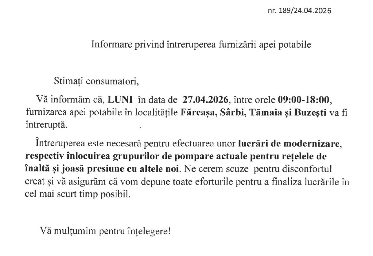 Staţia nouă de epurare a apelor uzate menajere (Stainless Cleaner) a fost finalizată in anul 2022.
